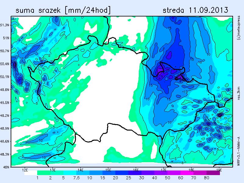 V noci bude zataženo, déšť nebo přeháňky, na východě i srážky intenzivní. Od západu přechodné ubývání srážek i oblačnosti. Během dne od západu opět oblačno až zataženo, místy občasný déšť nebo přeháňky. Ranní teploty klesnou na 11 až 7 st., odpolední teploty vystoupí na 14 až 18 st., na výchdoě místy 20 st. V 1000 m na horách kolem 10 st. Foukat bude mírný západní vítr 2 až 6 m/s.