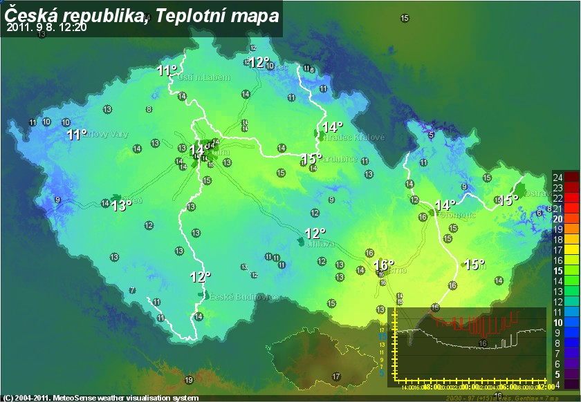 Za okny vládne nevlídné podzimní počasí. Velká oblačnost, občasný déšť nebo přeháňky. Teploty jsou nízké, v poledních hodinách se pohybují mezi 11 až 16 st. a během odpoledne už příliš neporostou (maximálně o dva stupně). Čtvrtek tak bude nejchladnějším dnem tohoto týdne. Aby toho nebylo málo, přidává se i čerstvý západní vítr, který v nárazech dosahuje rychlostí kolem 15 m/s. Předpověď na další dny už je ale optimističtější. Vítr bude slábnout už dnes k večeru, v pátek během dne bude ubývat jak srážek tak oblačnosti a na víkend se můžeme tešit. Bude většinou slunečno a oteplí se. V neděli porostou odpolední maxima na některých místech možná až k tropické třicítce.
