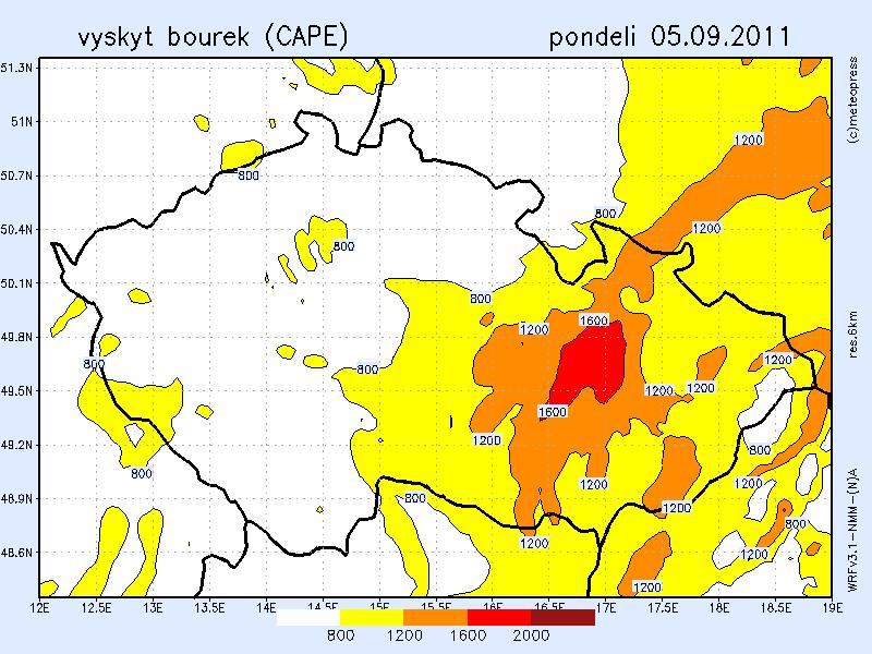 Přes naše území dnes přechází studená fronta. Na Moravě a ve Slezsku však ještě v dopoledních hodinách bylo polojasno a teploty dnes stačí vystoupit až ke 30 st. Během odpoledních a večerních hodin se pravě ve východní polovině území mohou místy vyskytovat i bouřky, ojediněle silné, doprovázené přívalovými srážakmi a zesílením větru. První bouřky se už krátce po poledni zformovaly na česko-rakouském pomezí. Srážková a bouřková činnost bude během odpoledne sílit. Aktuální vývoj srážkové/bouřkové činnosti můžete sledovat na http://radar.meteopress.cz/.