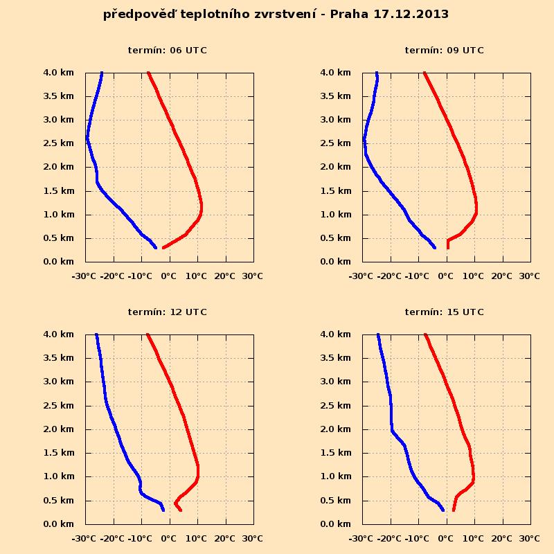Dnešní inverze opravdu stojí za zmínku. Je docela impozantní. U země teplota kolem -3 °C, v 1000 m skoro 13 °C. Alespoň, že je na více místech slunečno, hned se to trochu lépe snáší…