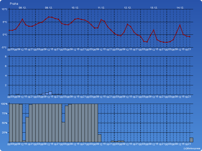 Ve čtvrtek bude jasno až polojasno, místy zataženo nízkou oblačností a mlhavo. Noční teploty 0 až -4 °C. Denní teploty 2 až 6 °C, v místech s nízkou oblačností kolem 0 °C. Proměnlivý vítr do 3 m/s.