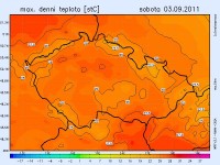 V prvním zářijovém pracovním týdnu očekáváme převážně velkou oblačnost, na většině území s občasným deštěm nebo přeháňkami, v pondělí místy i bouřky. Postupně se bude ochlazovat – v pondělí ještě naměříme až 26 °C, postupně nejčastěji 18 až 24 °C. Ranní teploty se budou nejčastěji pohybovat mezi 13 až 8 °C.