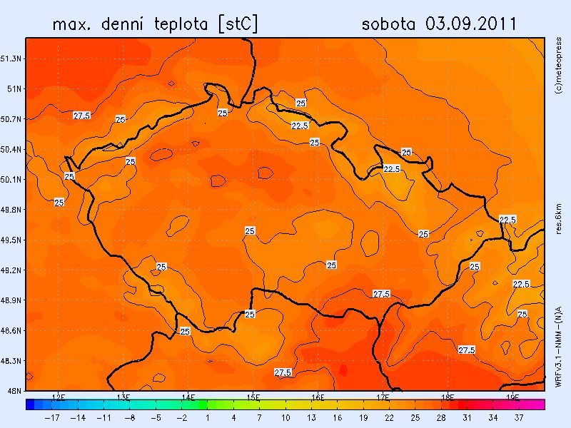 Během víkendu bude do Česka proudit teplý vzduch od jihozápadu, který přinese odpolední teploty těsně pod tropickou hranicí 30 °C. Oblačnost s deštěm začne přibývat až během nedělního večera, kdy do střední Evropy postoupí brázda nízkého tlaku vzduchu, do té doby bude jasno až polojasno, pouze po ránu ojediněle s mlhami.