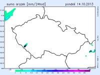Během pondělí bude počasí na území Česka pod vlivem výběžku vyššího tlaku vzduchu od východu. Očekáváme polojasno až oblačno, ráno a dopoledne místy mlhy nebo zataženo nízkou oblačností. Nejvyšší teploty 13 až 17 °C. Teplota v 1000 m na horách kolem 9 °C. Slabý východní až severovýchodní vítr do 4 m/s.