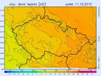 Pátek přinese teploty nejčastěji do 22 °C – v maximech naměříme 12 až 22°C. Teplota v 1000 m na horách se bude pohybovat kolem 11 °C. Teplotní rekordy padat nebudou.