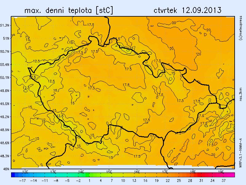 Střední Evropa je v těchto dnech nejchladnější oblastí kontinentu. Ani v dalších dnech teploty neporostou přes 20 st. Ve čtvrtek klesnou ranní teploty na 11 až 7 st., odpolední vystoupí na 14 až 18 st. Teplotní rekordy padat nebudou.