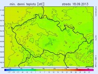 Chladné počasí bude pokračovat. Ve středu klesnou ranní teploty na 7 až 3 st., na východě při zmenšené oblačnosti ojediněle přízemní mráz. Odpolední teploty vystoupí na 11 až 16 st.