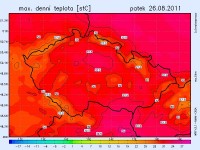 Dnešní nejvyšší teploty se zastaví mezi 30 až 34 °C, ve čtvrtek bude v maximech 31 až 35 °C. Díky zvýšené relativní vlhkosti vzduchu je naše pocitová teplota až o 2 °C vyšší. Během odpoledních hodin se mohou ojediněle vyskytnout bouřky doprovázené přívalovým deštěm a krupobitím. Tropické počasí ukončí přechod studené fronty během noci na sobotu, která přinese místy silné bouřky s nebezpečnými doprovodnými jevy.
