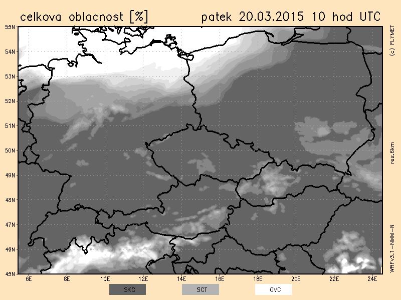 Zatím předpověď počasí vypadá pro pozorování tohoto úkazu z našeho území dobře – střední Evropa se bude nacházet v nevýrazném tlakovém poli a frontální oblačnosti by u nás mělo začít přibývat od severozápadu až odpoledne. Na některých místech ale bude začátek pozorování omezovat možný výskyt mlhy nebo nízké oblačnosti.