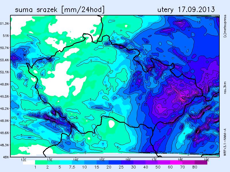 V úterý bude zataženo až oblačno, místy déšť, v jihovýchodní polovině území i trvalý a vydatný. Během dne od západu proměnlivá oblačnost a ojediněle přeháňky. Ranní teploty klesnou na 12 až 8 st., na západě kolem 6 st. Odpolední teploty vystoupí jen na 11 až 15 st. V 1000 m na horách kolem 7 st. Foukat bude čerstvý severozápadní až západní vítr 4 až 8 m/s, místy s nárazy kolem 15 m/s, bude slábnout.