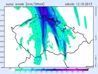 V sobotu bude oblačno až polojasno, během dne místy déšť nebo přeháňky. Ráno ojediněle mlhy. Nejvyšší denní teploty vystoupí na 12 až 16 °C, na východě území až k 22 °C. V neděli bude oblačno až polojasno, zpočátku dne místy déšť nebo přeháňky. Ráno místy mlhy. Denní teploty vystoupí na 12 až 16 °C, na východě až ke 20 °C. Také noční teploty přinesou rozdíly – nejčastěji naměříme 12 až 8 °C, na západě jen kolem 3 °C. Teplota v 1000 m na horách se bude pohybovat kolem 8 °C, v Jeseníkách a Beskydech kolem 15 °C.