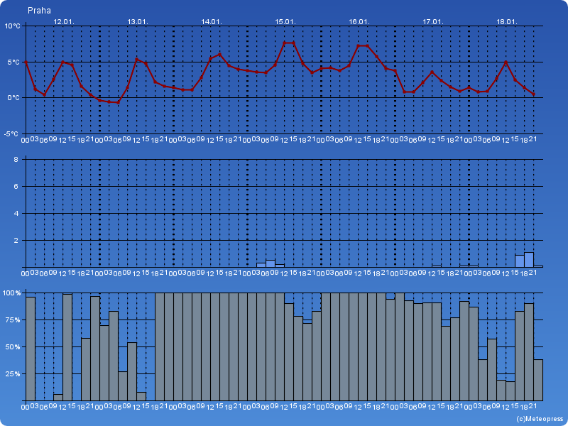 Ve čtvrtek bude převážně zataženo nízkou oblačností a mlhavo, ojediněle mrholení. Ojediněle polojasno. Noční teploty 4 až 0 °C. Denní teploty 3 až 7 °C. Severozápadní vítr 2 až 6 m/s.