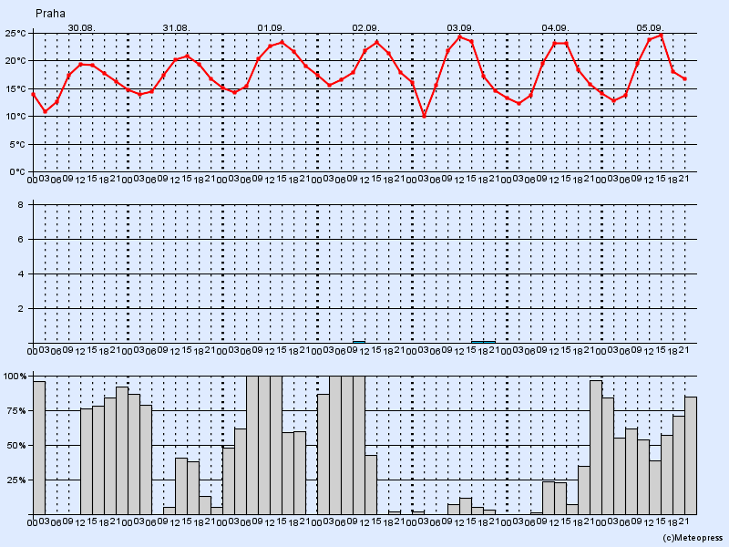 Období jako celek předpokládáme teplotně: nadprůměrné (průměrná teplota v ČR 12,8 °C, v Praze 13,6 °C).